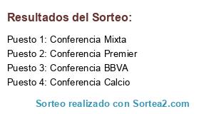 Lista de participantes: Conferencia BBVA, Conferencia Premier, Conferencia Calcio, Conferencia Mixta.