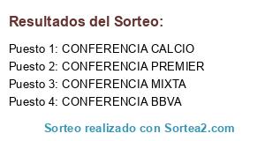 Lista de participantes: CONFERENCIA BBVA, CONFERENCIA CALCIO, CONFERENCIA PREMIER, CONFERENCIA MIXTA.