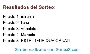 Lista de participantes: Anacleta, Marcelo, Veritoz34, unilateral543, leydi di, llena, claudiatropa, mirenla, flaquita, ESTE TIENE QUE GANAR, YEAH.