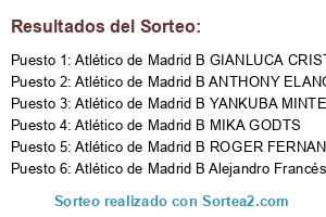 - Puesto 6: Atlético de Madrid B Alejandro Francés