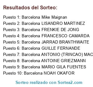 Lista de participantes: Barcelona Cody Mathes gakpo, Barcelona JONATHAN TAH, Barcelona ODILON KOSSOUNOU, Barcelona MARIO GILA FUENTES, Barcelona GABRIEL MARTINELLI, Barcelona FRENKIE DE JONG, Barcelona NOAH OKAFOR, Barcelona ANTONEE ROBINSON, Barcelona JOAO CANCELO, Barcelona WARREM ZAÏRE EMERY, Barcelona FRANCESCO CAMARDA, Barcelona ANTONIO (TRINCAO) MACHADO, Barcelona ANGEL DI MARIA, Barcelona Mike Maignan, Barcelona LISANDRO MARTINEZ, Barcelona ANTOINE GRIEZMANN, Barcelona MIKA MARMOL, Barcelona ALEX REMIRO, Barcelona MOHAMED KUDUS, Barcelona NICOLO ROVELLA, Barcelona AMIR IBRAGIMOV, Barcelona JARRAD BRANTHWAITE, Barcelona Ferran Torres García, Barcelona FEDERICO GATTI, Barcelona GUILLE FERNANDE.