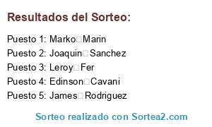 Resultados del sorteo: