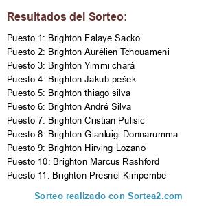 Lista de participantes: Brighton Jakub pešek, Brighton Falaye Sacko, Brighton scoot mcTominay, Brighton André Silva, Brighton VICTOR OSIMHEN, Brighton Hirving Lozano, Brighton ADAMA TRAORE, Brighton Andrea consigli, Brighton Gianluigi Donnarumma, Brighton Marcus Rashford, Brighton Aurélien Tchouameni, Brighton Yimmi chará, Brighton Presnel Kimpembe, Brighton Cristian Pulisic, Brighton thiago silva, Brighton PAULO DYBALA, Brighton Andrew Robertson, Brighton Ridgeciano haps, Brighton RAPHAEL VARANE.