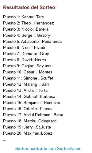 Resultados del sorteo: