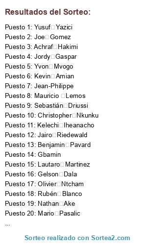Lista de participantes: Yvon Mvogo, Maximiliano Romero, Joe Gomez, Samir Caetano de Souza Santos, Jean-Philippe, Gbamin, Benjamin Pavard, Nathan Ake, Achraf Hakimi, Alen Halilovic, Kelechi Iheanacho, Lautaro Martinez, Yusuf Yazici, Gelson Dala, Olivier Ntcham, Jairo Riedewald, Daniel Casted Podence, Christopher Nkunku, Rubén Blanco, Tanguy Ndombele, Kevin Amian, Mauricio Lemos, Jordy Gaspar, Mario Pasalic, Sebastián Driussi.
