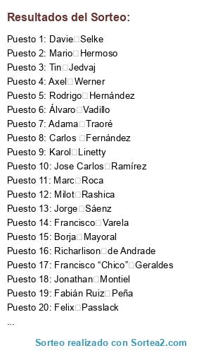 Resultados del sorteo: