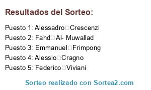 Lista de participantes: Alessio Cragno, Ryan Mason, Jonathan Williams, Federico Viviani, Emmanuel Frimpong, Alex Grimaldo, Alessadro Crescenzi, Davide Faraoni, Fahd Al- Muwallad, Willy Boly, Oskan Yildirim, Lucas Melano, Richmond Boakye, Mario Gaspar.