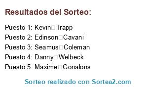 Lista de participantes: Kevin Trapp, Michel Vorm, Ivan Perisic, Alan Dzagoev, Maxime Gonalons, Daniele De Rossi, Beñat Etxebarria, Seamus Coleman, Juan Bernat, James Rodriguez, Joel Campbell, Joaquin Sanchez, Eliaquim Mangala, Marc Bartra, Bruno Alves, Edinson Cavani, Danny Welbeck, Ruben Castro, Leroy Fer, MARCO MARIN.