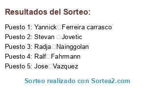 Lista de participantes: THIAGO SILVA, ITURBE, Samir Handanovic, Ben Foster, Neymar, David Alaba, Nabil Fekir, Kevin De Bruyne, Yaya Toure, Radja Nainggolan, Miguel Layun, Ibai Gomez, Joaozinho, Raphael Varane, Stevan Jovetic, Pierre-Emerick Aubameyang, M'Baye Niang, Achraf Lazaar, Yannick Ferreira carrasco, Jose Vazquez, Jonathan Viera, Ralf Fahrmann.