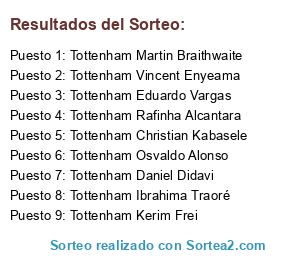 Lista de participantes: Tottenham Vincent Enyeama, Tottenham Mario Fernandes, Tottenham Michel Macedo, Tottenham Ridgeciano Haps, Tottenham Jose Holebas, Tottenham Christian Kabasele, Tottenham Daniel Didavi, Tottenham Laurent Ciman, Tottenham Idrissa Gueye, Tottenham Osvaldo Alonso, Tottenham Michy Batshuayi, Tottenham Atiba Hutchinson, Tottenham Rafinha Alcantara, Tottenham Juan Iturbe, Tottenham Yusuff Poulsen, Tottenham Nathan Dyer, Tottenham Kerim Frei, Tottenham Eduardo Vargas, Tottenham Alexander Szymanowski, Tottenham Ibrahima Traoré, Tottenham Tim Howard, Tottenham Felipe Anderson, Tottenham Martin Braithwaite.