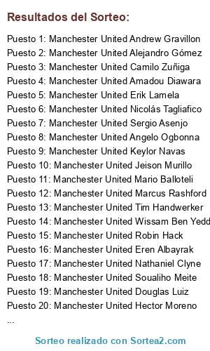 Lista de participantes: Manchester United Henrikh Mkhitaryan, Manchester United Erik Lamela, Manchester United Angelo Ogbonna, Manchester United Marcus Rashford, Manchester United Alejandro Gómez, Manchester United Camilo Zuñiga, Manchester United Hector Moreno, Manchester United Mario Balloteli, Manchester United Jeison Murillo, Manchester United Sergio Asenjo, Manchester United Keylor Navas, Manchester United Eren Albayrak, Manchester United Soualiho Meite, Manchester United Wissam Ben Yedder, Manchester United Tim Handwerker, Manchester United Robin Hack, Manchester United Douglas Luiz, Manchester United Dan-Axel Zagadou, Manchester United Vitolo, Manchester United Nathaniel Clyne, Manchester United Andrew Gravillon, Manchester United Amadou Diawara, Manchester United Nicolás Tagliafico.