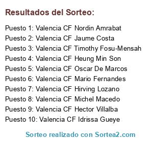 Lista de participantes: Valencia CF Luka Modric, Valencia CF Dries Mertens, Valencia CF Blaise Matuidi, Valencia CF Gelson Martins, Valencia CF Bernd Leno, Valencia CF Alex Sandro Lobo, Valencia CF Jerome Boateng, Valencia CF Sokratis, Valencia CF Juan Cuadrado, Valencia CF Alex Oxlade-Chamberlain, Valencia CF Filip Kostic, Valencia CF Matija Nastasic, Valencia CF Rick Karsdorp, Valencia CF Daniel Sturridge, Valencia CF Vicent Koziello, Valencia CF Kevin Kampl, Valencia CF Gabriel Paulista, Valencia CF Naby Keita, Valencia CF Eder Balanta, Valencia CF Cedric Soares, Valencia CF Ederson Santana.