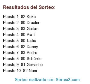 Lista de participantes: 83 Pedro, 83 Gaitan, 82 Koke, 82 Nani, 82 Danny, 81 Gervinho, 80 Draxler, 80 Tadic, 80 Schürrle, 80 Piatti.