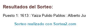 - Puesto 1: 1613 Yaiza Pulido Pablos Alberto Jurado