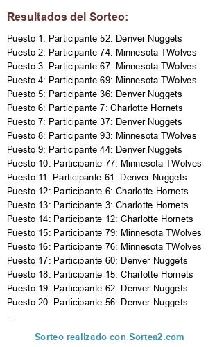 - Puesto 1: Participante 52: Denver Nuggets