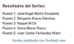 Lista de participantes: Francisco Joaquin Chamizo Castlla, Juan Molero Hidalgo, Mary Gonzalez, Manuel Angel Maestre Delgado, Francisco Javier Vazquez, Jose Mgp, Javier Jb, Beatriz Ibáñez, Susimari R de Garcia, Begoña García Álamo, Alina Dobrea, Alejandro Jaspe, Isabel Maria Maqueira Marin, Fernando Fajardo Chunchi, Diego Rodriguez J, Jones Caaz, Raquel M Ch, Natalia Llanos, Isabel Sainz Pardo Gonzalez, Noelia Oronoz Rodriguez, Paloma Ml, Cristina Seizetheday, Sonia Navarro Dominguez, Mirella Alva, Marta Escribano, Raquel Alcon, Mariam Fernandez Nevado, John Tres Dieciseis, Luis Galvez Heras, Ana Carrizosa Ruiz, Karen Benvenuto, Luz María Arias Agudo, Pablo de Castro, Saritaa Ya Tu Sabes, Sheila Sanchez Martinez, Ana Martinez, Tamara Morales, Ana Maria, Micky Castro, Sara Pérez Fernández, Belén Alonso, Judit Serrano, Pilar Mallagray Sobola, Martín Detarsio, Irene Cid, Carolina Arroyo Romero, Soraya Astigarraga, Rosita Lerma Guerrero, Ines Perez, Angel Castro Ortiz, Borja Osada Gallego, Rian Saceda Salto, Alberto Cubero González, Tatiana Mota, Estela Perez, Veronica Ripoll Valiente, Maria Jesus Molina Gomez, Laura Lopez Leria, Jose Manuel Rodríguez, María Victoria González, Silvia López Lería, Jose Angel Martín Escalante, Elena Navarro del Castillo, Luisa Monge Benito, Verónica Corral Arroyo, Mariví Domínguez Olmedilla, Mpac Usuaria DE Aqui, Juan Carlos Fernandez Marin, Virginia Rakkauslaulu, Sonia Moron Romo, Francisco Sanz, Samantha LC, Beatriz Ballesteros Salcedo, Zahira Gálvez, Irene Castro Cumbreras, Nohemi Mora, Beatriz Amado, Benjamin Ruano Sánchez, Pilar Fuente Yague, Isabel Navarro Gonzalo, Leticia Cordobes, Tamara Sierra, Liceras Gonzalez, Michael Gonzalez Lafite, Oscar Palacios Porrero, Isra Adrados Sanchez, Andreea Dogariu, Carmen Cervigon Lopez, Antonia Sanchez Garcia, Ana Trufula, Jose L. V. Sanchez, María Cabas, Pequeña Rosa, Judith Pérez, Belen Palomero, Alberto Lorido Ramírez, Fanny Elisa Herrera Alonso, Raquel Medina Pulido, Estrella Hernández Carpio, Rosa Molina Gomez, Jesus Mateos, Vicente Ludy, Pili Torres Fernandez, Rosa Maria Martin Bravo, Ana Bauzá Peregrín, Lucia Ruiz Trujillo, Jose Antonio Saz Isidro, Laura Barroso Alvarez, Trynyty Carrasco, Rosario M Méndez, Marta Perez Moreno, Montse Gonzalez, Alberto Santander Martínez, Gema Ricardo, Clara Peña Hellin, Almudena Platas, Luis Hervas, Jorge Alberto Bustillos, Maria Jose Rodriguez, Marta Losa Gil, Carmencita Del Sol, Irene Cecilia, Montse Lm, Jose David Cañete Samudio, Nuria Reina De Las Nieves Calderon, Nuria Calderón García, Nessy Bn, Lorena Torres Inés, Laura Ruz Vega, Ana Garcia Arellano, Paqui García, Luz Ma Serrano, Carlos Gomez Gomez, Sandra Falomir Bállega, Mónica Ramírez, Miguel Angel Cervantes Almodóvar, Nancy Arnaiz Martinez, Aurelio de la Calle, Francisca Heredia Perez, David Clua Argemi, Rafael Concostrina, Ana McDwmont, Gema Molina Gomez, Rosa Maria Gomez Sanchez, Gloria GM, Pablo Jimenez, Loly Simon Ruiz, Nuria Cabañas Fernandez, Pablo Sanchez Del Pino, Sara Mínguez Andrés, Pilar Soler Nozal, Isabel Nuñez Camuñas, Juani Pantoja Roncero, Rafael Sanchez Quiñonero, Elena Martínez Vaquero, Charo Romero Álvarez, Paquita Alvarez Alfaro, Manuel Romero Diaz, Victoria Díaz, Helena Romero Alfaro, Jose Maria Martinez, Beatriz Ramos, Rebeca Quílez, Antonia Cer, Zarusito De los Mares, Cristina Guerro, Pilar Martin Clemente, Valentina Pasmangiu, Maria Del Prado Miguelez Chacon, Antonio Pedrero Castilla, Sandra Alonso Hernández, .