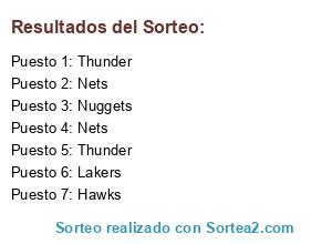 Lista de participantes: Hawks(18), Jazz(23), Lakers(29), Nets(49), Nuggets(19), Thunder(30), Timberwolves(24).