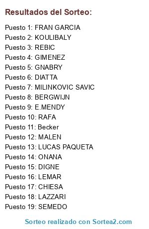 Lista de participantes: E.MENDY, ONANA, KOULIBALY, GIMENEZ, SEMEDO, LAZZARI, FRAN GARCIA, DIGNE, MILINKOVIC SAVIC, RAFA, LEMAR, DIATTA, LUCAS PAQUETA, GNABRY, MALEN, BERGWIJN, REBIC, Becker, CHIESA.