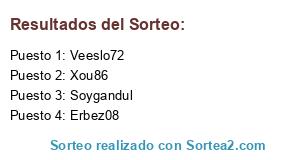 Lista de participantes: Erbez08, Soygandul, Veeslo72, Xou86.