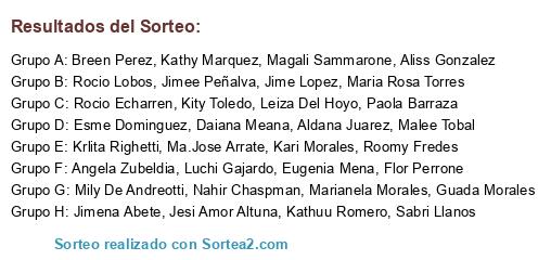 Lista de participantes: Rocio Lobos, Guada Morales, Angela Zubeldia, Aldana Juarez, Daiana Meana, Leiza Del Hoyo, Eugenia Mena, Jesi Amor Altuna, Ma.Jose Arrate, Sabri Llanos, Krlita Righetti, Nahir Chaspman, Kity Toledo, Kathy Marquez, Breen Perez, Kathuu Romero, Marianela Morales, Magali Sammarone, Jime Lopez, Jimee Peñalva, Paola Barraza, Jimena Abete, Luchi Gajardo, Roomy Fredes, Esme Dominguez, Malee Tobal, Mily De Andreotti, Rocio Echarren, Aliss Gonzalez, Maria Rosa Torres, Flor Perrone, Kari Morales.