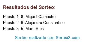 Lista de participantes: 1. Hector, 2. Pablo Bermudo, 3. Fernando Joaquín Marquez, 4. Daniela Reguera, 5. Marc Ríos, 6. Alejandro Constantino, 7. David de Juan Iglesias, 8. Miguel Camacho, 9. Jairo.