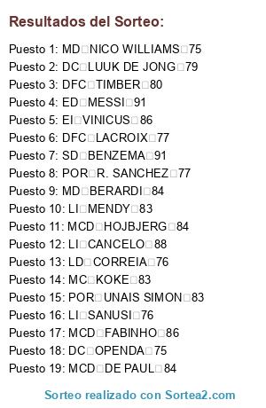 Resultados del sorteo: