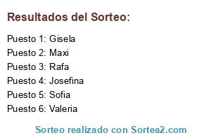 Lista de participantes: Maxi, Rafa, Sofia, Valeria, Josefina, Gisela.