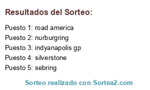 Lista de participantes: silverstone, indyanapolis gp, road america, sebring, nurburgring.