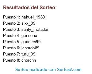 Lista de participantes: metileno, nicoarg, juanitox-86, sebasnico, pato2289, lukelix, alesabina, foxalive1981.