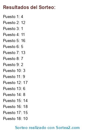 Lista de participantes: 1, 2, 3, 4, 5, 6, 7, 8, 9, 10, 11, 12, 13, 14, 15, 16, 17, 18.