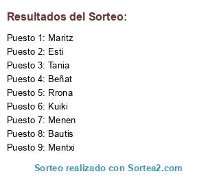Lista de participantes: Bautis, Beñat, Dimi, Esti, Kuiki, Maritz, Menen, Mentxi, Rrona, Tania.