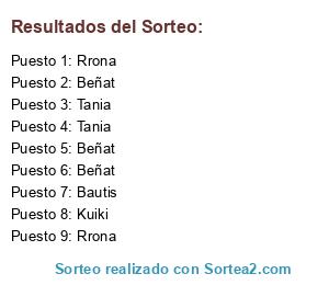 Lista de participantes: Bautis (9), Beñat (9), Dimi (9), Esti (9), Kuiki (9), Maritz (9), Menen (9), Mentxi (9), Rrona (9), Tania (9).