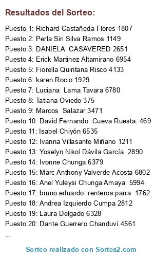 - Puesto 26: Elvis Alberto Cordova Gonzales 254