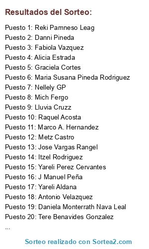 Lista de participantes: Sofi Espinoza , Mariel Sanchez , Metz Castro , Itzel Rodriguez , Ros Mrt Aidd , Fabiola Vazquez , Juanita Ortiz , Alejandra Escamilla Buenrostro , Leydy Lopez Carrasco , Stephanie Soto , Kari Gonzalez Vite , Asaa Castillo , Isela Reyes , Daniela Monterrath Nava Leal , Antonio Velazquez , Juana Hernandez , Arellano Rey , Karen Cruz Hernandez , Feernanda Aguilar , Yareli Perez Cervantes , Katt Gomez , Nancy Hernandez , Reki Pamneso Leag , Saxay DelCo , Niz Castro , Ferka On Line , Maria Susana Pineda Rodriguez , D Mailin Garcia , Cize Escamilla , Alicia Estrada , Graciela Cortes , J Manuel Peña , Dul Werita , Bethy Azpiculeta , Danni Pineda , Claudia Ortiz , Jessi Garcia , Juana Hernandez Gonzalez , Marco A. Hernandez , Nellely GP , Andre Godinez Sanchez , Viry Gomez , Oswaldo Ortiz Gonzalez , Diana Garcia Lopez , Lizeth Montalvo Gonzalez , Stephanie De Escamilla , Estrellita Rous Rous , Sofia Garrido , Carlos Monter , Lilia Gomez , Tere Benavides Gonzalez , Oscar Cruz , Camila Loz , Jac Chino , Lluvia Cruzz , Ame Vald , Eduardo Aguilar , Yareli Aldana , Lizbeth Bautista , Jaquelin Lopez , Mich Fergo , Raquel Acosta , Melissa BG , Lupita Romero , Torres Yeni , Karii Ortiz , Jose Vargas Rangel , Marlen Lopez , Kris Hache.