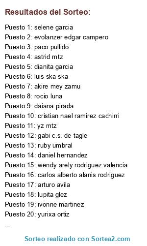 Lista de participantes: adriana zapata zuvirie, akire mey zamu, ale roa, alejandra gonzalez rangel, arturo avila, astrid mtz, brenda maria sierra trejo, carlos alberto alanis rodriguez, claudia gomez, cristian nael ramirez cachirri, perla tuzita garcia, daniel hernandez, dianita garcia, edith velazquez, evolanzer edgar campero, gabi c.s. de tagle, garcia zareth, selene garcia, ivonne martinez, josue climaco, karina hernandez, karos montiel montiel, kary tellez flores, luis ska ska, lupita glez, mari flores, maty garcia, meztli mendoza serrano, mimi miranda, nin kris, paco pullido, pepe luis garcia, daiana pirada, pollomode barefoot, rocio de la rosa, rocio luna, ruby umbral, sbeidy leon, itzy lovely lazaro, tom rodriguez, uriel martinez garcia, vian gonzalez, wendy arely rodriguez valencia, yareli lazaro, Ynavohj Naitsirhc , yurixa ortiz, yz mtz.