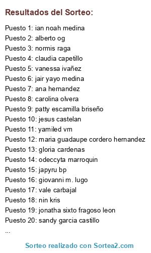 Lista de participantes: jack monty, miguel angel canales, luis angel olvera, ivan mauricio, salmmy islas lizarraga, aleex roldan, ulises garcia castillo, marco campos, sayuri matiias, Evemiky villa torres, alberto og, susana cervantes mar, nadia rocha delgado, ruth rb, garcia zareth, nadia yoselin rodriguez, geovani alvarez, jaliskilla jaliskilla, jonathan mejia, marisela garcia, beto salas, malecsy hidalgo, nayeli meneses ramirez, nizi badillo, mish carrillo, dulce amador, adahy rubi beltran, nin kris, mariio amador, jm gomez, laura casolco perez, carolina olvera, claudia capetillo, gaby miranda, zoe buena sandy, giovanni m. lugo, sualc arutnev, karla hrz, ulises neria, yenn hernandez, erika martinez, joseline hernandez, japyru bp, orak auriazul, clau cortes, jac chino, carlos garcia, felipe lopez rosales, jamil mata, gloria cardenas, marylin as, corayma martinez, maria guadaupe cordero hernandez, denn izovich, joseph hdez, misi hernandez, leon val, mariana mmendorta, mili martinez, kari hernandez, gracenaranja gracenaranja, judith berenice aguilar v, normis raga, fred vertii, ma guadalupe flores angeles, hilda portillo, yamiled vm, luis armando m s, alexizz mendoza, daniela hernandez, yyda aeimnrstz, ale mtz, isc erick san, jesus castelan, marthisela valdez castro, checo trigueros cabrera, nataly hernandez benitez, giovana carbajal, alonsolunix luna, jonatha sixto fragoso leon, patty escamilla briseño, denis garcia, vale carbajal, irving carmona gonzalez, odeccyta marroquin, sandy garcia castillo, ian noah medina, ana hernandez, jair yayo medina, eva guadalupe austria, ely rodriguez, lucas kaiser, hernandez jaramillo, utzi lovely lazaro, diana perez ortiz, gm ida, vanessa ivañez, joseline mgv, brenda fabiola flores ruis, patrich zevach.