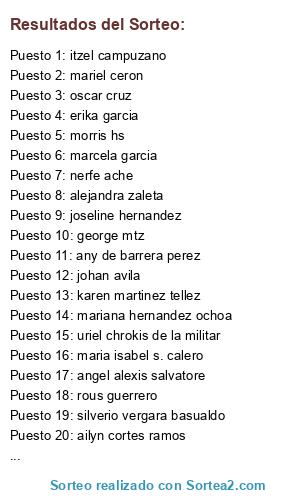 Lista de participantes: aaron rafael, abi chavez soberanes, abigail mociños, abii gelista reyes, abii mrtnez, adith angelica telpalo prado, adnaloy cardenas a, adriana franco, adriana soto marquez, ailyn cortes ramos, alberto lugo, ale lopez, ale lugo, ale mtz, alejandra flores, alejandra zaleta, alejandro lopez, alejandro moreno, alejandro teck escamarada, alex hernandez monroy, alexizz mendoza, alhely zalvador rangel, alma mendoza, alma romero, alma rosx hiipolito, alo zadkiel, amado balderrama angeles, america garcia, anahi corona, anahi valdez, anastasia nena moreno, andy lar, andy luna vite, angel alexis salvatore, angel gustavo, angel perez, angeles medrano, angelica paredes, angie estrada lodecar, anna a´p, annethytha martynez, annya castañeda, antonio abad, antonio valencia soto, any de barrera perez, anzury mendoza, araceli eal lae, aracely lo, arely martinez, aricka dimas ericka, arisai ferreti, ariz beth, avigo luis, belen ramos, benjamin hernandez, benjas islas, bere garcia montes de oca, beriel morales, beto sanchez, blanca candelario, bonni smiile, brenda garcia, brenda hannah, brenda vargas, brian garnica sarabia, bris laguna, brisa perez, bryan ryz crrtos, canales mariza, carloz olvera, carmen camba luna, cesar leonardo jimenez trujillo, cheli gomez, chuy angeles, cinthy flores, clara hernandez cano, claudia gonzalez, cln garcia, consuelo villeda, cory alarcon, criss san guti, cristian navarrete pereda, dalia peña valdez, damaris itzel rivera gutierrez, daniel lara, daniiel quintanar, david garnica, denisse gama, denisse yañez, diana cervantes benitez, diana herrera, diana karen g frausto, diana sugey rodriguez sanchez, dianita deedee, dianita hernandez, dixy perez, doricela juarez angeles, dtc clau maggy, dulce fuentes, dulce islas, eadgyth gonzalez cortes, ed basurto sanchez, edgar alejandro cosolco, edgar javier hp, edgar pelcastre, edith delgadillo, edith martinez, eduardo flores espinoza, elaj marquez, elia martinez saucedo, elieer geovany perez vargas, eliliana martinez cruz, eliseo lazcano, eri kika, erika garcia, erika lara, erika tellez arista, esmeralda diaz, evelyn torres, fercho lop, francisco cabrera c, francisco gachuz lsa, fuentes vani, gabi sanchezz perez, gabriela monterrey, gaby anaya alvarado, gabyy barrera, garcia sol, gelista reyes fabiola brenda, george mtz, gladiz lora lora, gloria blas salvador, gris meneses, guadalupe dimas, gustavo garcia, hanai hernandez, haydesita mt, hector elizondo, hellen monroy, hernandez jenny, htide edith, ibaf fabi, ines cruz, irene islas, iridian pineda, isabel carreras arteaga, isabel contreras arteaga, isabel escarcega, isabel martinez, isabella galvan, isai hernandez, itzana amarinthia, itzel campuzano, itzel hernandez, itzel severiano, ivonne bermar, ivonne garcia, ixchel ramos, jadciri ramos, janeth fragoso, jauqeline juarez, jazmin de padilla, jesus gonzalez, jesus vargaz, joana licona, johan avila, jonathan cruz, jonuet gutierrez, jose de la cruz, joseline hernandez, joseline mh, josse vargas, juanis monzalvo lopez, julio mondragon, julissa juarez ruiz, junhs hernandez, karen martinez tellez, karenciita romero mont, karina hernandez, karla elizalde, klauss kmacho, lalo guerrero granados, laurita laurita, leticia rios hernandez, lily loud, lis cav, lizeth vial, lopez martinez guadalupe, lorena alvarez, lu zapata, lucero luna, lucy ortega, lucy reyna spota, luis alberto zuñiga aguirre, luis eduardo chavez martinez, luis enrique perez, luis na, luisa sanchez, luluciernaga hernandez, lupis armenta, lupita perez, lupitha gsp mnqz, ma guadalupe flores angeles, magos panquecito luna, maichuy gachuz, maik fernandez, maliina beelen, manuel oliva, maracuh cordeo, marcela garcia, marcos dymas, maria ines, maria isabel s. calero, mariana barajas, mariana hernandez ochoa, mariana olguin, marible mena rodriguez, mariel ceron, mariela maris morales, mariela olvera ortiz, marieli lugo, mariia yesskaa, marisol duarte rodriguez, marlene torres, mary lolis saavedra, matti rubio, maydee muñoz garnica, mayeli vazquez, mayra abigail escorza, mayra cristina cervantes escamilla, melani masiel dt, mi vida, mich ortiz garcia, miguel angel canales, miguel sauza, monse sanchez, monserrat mateo muñoz, monserrat ortiz ibarra, monserrat san agustin hernandez, morris hs, myriam lara, nan ortiz, nancy velasco, nataly ortiz, nelly escamilla, nena valentin, nereida ortiz bahena, nerfe ache, nery hernandez, nna moxa, nna nayeli cortes, noemi bautista, norma mendoza, nydia rivera, ofelia florencio, ortiz lizzy ocampo, oscar cruz, oziel montiel camacho, paola noguera, pily rosales, ramos annie, rbk manriquez, reina hernandez, reyes alexandra jetsehelim, ricardo ivan maturano, rl mayra, rocio hernandez, rodrigo hernandez, rodrigo jackome, rosa armenta, rosario mayorga perez, rossy narvaez ruiz, rous guerrero, ruano hernandez, said torres, samantha morales ortiiz, sandra sanchez, sandy santillan, sarahi tuzita perez, sariittaa lara, sebastian jonathan, sergio moreno cabrera, sh alan, silverio vergara basualdo, silvia hernandez, sochitl hernandez, sonia hernandez, sony betsa, suriel estrada perez, susan silos, susana flores garcia, susy lopez, tania morithazz, tanni aleman flores, tere ortiz, tevi zepol, toñita monroy, uriel chrokis de la militar, vale hernandez, valencia acuautla, vaniia hernandez, vasquez alex, venado bautista, ventura claaus, vero paredes, veronica bardales, veronica martinez, victor lopez, viko esparza clemente, vivi reyes, ximena navarrete, yadi gomez, yady cortiz, yanuri lopez, yaz martinez, yazmin jaurez garcia, yeraldin hernandez, yess yesy mendz corna, yolanda hernandez, yslasmoreno priss, yunuen romero, yuridza santillan, yuu granados, yz mtz, zuriel bolo gomez.