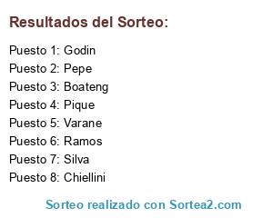 Lista de participantes: Boateng, Silva, Ramos, Godin, Pique, Chiellini, Varane, Pepe.