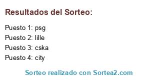 Lista de participantes: lille, cska, psg, city.