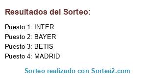 Lista de participantes: BAYER, BETIS, MADRID, INTER.