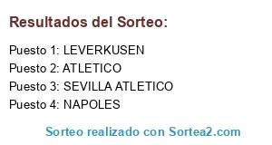 Lista de participantes: SEVILLA ATLETICO, NAPOLES, LEVERKUSEN, ATLETICO.