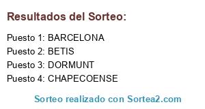 Lista de participantes: CHAPECOENSE, DORMUNT, BARCELONA, BETIS.