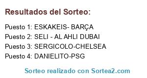 Lista de participantes: DANIELITO-PSG, SERGICOLO-CHELSEA, ESKAKEIS- BARÇA, SELI - AL AHLI DUBAI.