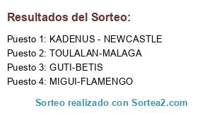Lista de participantes: MIGUI-FLAMENGO, TOULALAN-MALAGA, KADENUS - NEWCASTLE, GUTI-BETIS.