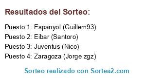 Lista de participantes: Zaragoza (Jorge zgz), Espanyol (Guillem93), Juventus (Nico), Eibar (Santoro).
