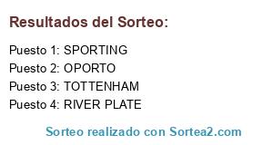Lista de participantes: SPORTING, RIVER PLATE, TOTTENHAM, OPORTO.