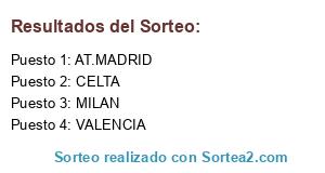 Lista de participantes: CELTA, VALENCIA, AT.MADRID, MILAN.