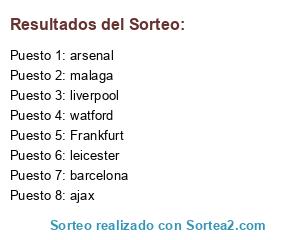 Lista de participantes: Frankfurt, barcelona, liverpool, leicester, watford, ajax, arsenal, malaga.