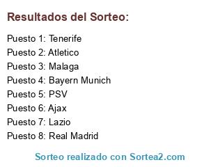 Lista de participantes: Lazio, Atletico, PSV, Malaga, Ajax, Tenerife, Real Madrid, Bayern Munich.