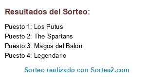 Lista de participantes: The Spartans, Legendario, Los Putus, Magos del Balon.